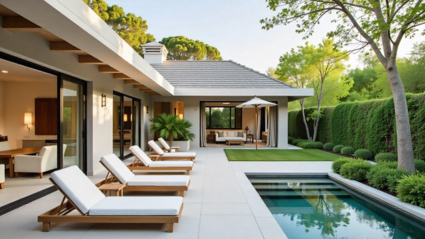- Zoning: Divide your outdoor area into functional zones—such as lounging, dining, and pool spaces.